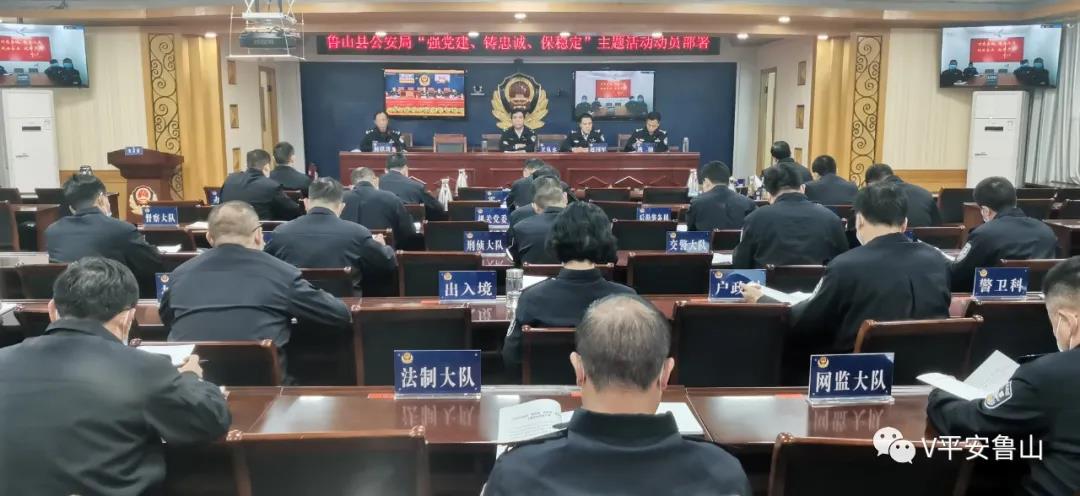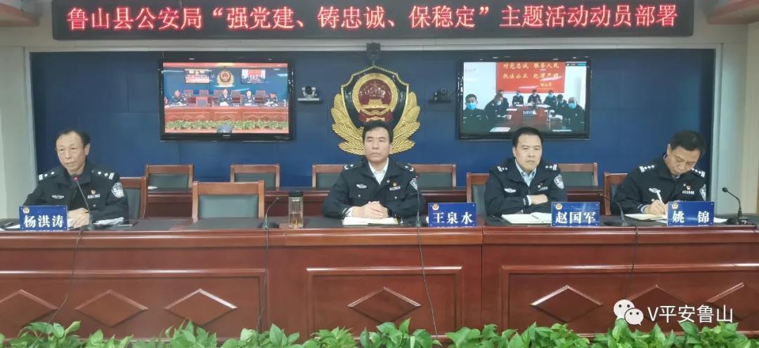为进一步引导全局广大民警、辅警深入学习贯彻习近平总书记系列重要讲话精神,增强“四个意识”、坚定“四个自信”、做到“两个维护”,筑牢理想信念、弘扬优良传统、赓续红色基因,为全县公安工作注入强大的精神动力,11月4日上午,全县公安机关“强党建、铸忠诚、保稳定”主题活动动员部署会在鲁山县公安局六楼会议室召开。在鲁班子成员、各派出所、局直各单位负责人参加会议,副县长、公安局党委书记、局长王泉水出席会议并讲话。