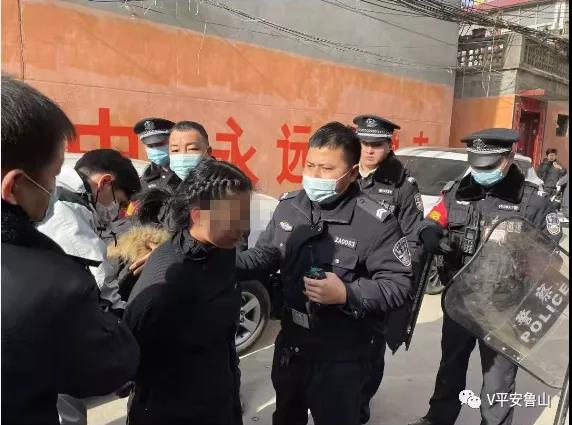 为防止意外发生,许鲁平当即将现场情况反馈给鲁山县公安局情指中心,一边请求巡特警大队支援,一边组织郭海波等人疏散周围围观人群,并将李某辉引导至北侧过道内。见到民警越来越多,失控的李某辉突然发难拿刀砍向其母亲郎某和现场民警,巡特警大队民警利用盾牌合力将李某辉按在一辆小型汽车上,许鲁平顺势将李某辉手中的菜刀夺下,将李某辉成功制服,随后许鲁平、郭海波等人在郎某的委托下将李某辉安全送至鲁阳卫生院接受恢复治疗。